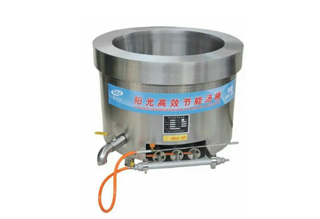 燃氣節能湯桶主要適用於蒸煮(煲)湯、粥、豆漿、煮麵條、鹵水加工、藥材加工、煮開水、食品保溫、高溫清洗消毒等。熱效率可以達到60%,同傳統明火湯爐和矮仔爐在同等條件下可節約燃氣45%,節省時間45%以上。可以用液化石油氣、天然氣、人工煤氣為燃料。燃氣節能湯桶由於容積大,可適用於餐飲酒樓、學校、醫院、機關單位、食品加工廠、釀造等。
