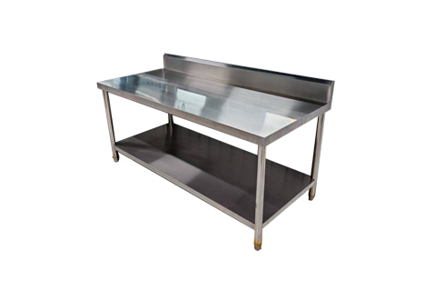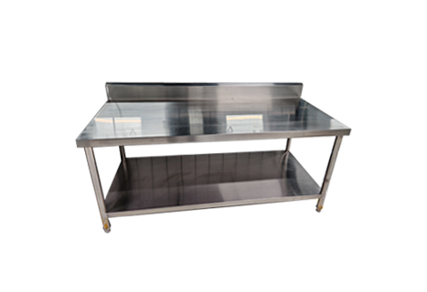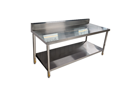 不鏽鋼雙層帶背靠工作台采用優質201 1.2厚不鏽鋼製作,配置U型加強筋和15mm木工板以及可調腳,更加堅固耐用,高度可靈活調整,適用於各類商用深夜网站免费观看。